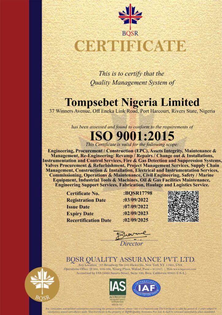 TOMPSEBET NIGERIA LIMITED will consistently instill Quality value through our services: